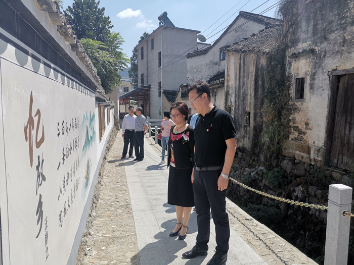 随后,杨林秀来到上庄镇余川村,详细了解人文提升建设工程推进情况。余川村围绕乡村振兴战略,充分结合村容村貌整治,开展人文提升建设工程,建设有村口村情介绍、余川人、群贤咏诗、余川景、余川民俗、家规家训村规民约、茶文化等版块,全力打造文化旅游精品。杨林秀对余川村建设工作表示充分肯定,希望镇党委、政府持续推动文化振兴,保护和发扬好徽文化,激发徽文化的活力,打造百姓精神家园,加快建设现代乡村文明。