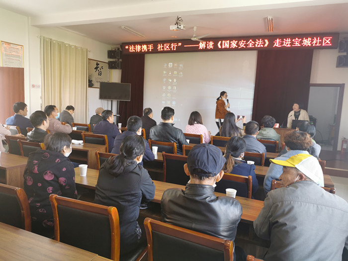 为进一步推进基层法治建设,充分发挥基层法治宣传作用,2020年4月8日,区政协委员、安徽师阳安顺律师事务所律师刘文婕律师应邀来到宝城社区开展了《国家安全法》和《中华人民共和国野生动物保护法》两场法治知识讲座。