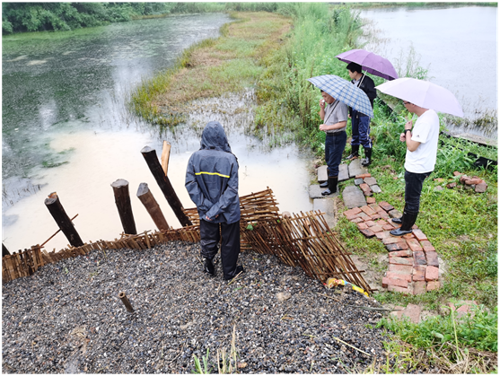 “邹书记,一定要告诉巡查人员注意安全,特别是错车的时候,不能莽撞。另外赵家湾的蚁穴要时刻巡查,有情况及时报告。打桩,把碎石填好,我现在去其它埂段,等会还要来看落实情况……”郎溪县政协党组书记、主席陈向阳对三溪村书记语重心长地说。