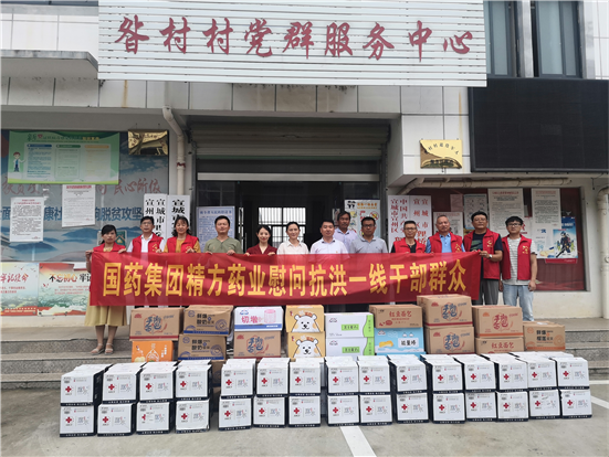 区政协委员、区政协智库成员、精方药业有限公司总经理左言东带领单位员工看望慰问狸桥镇姜家圩一线防汛干部群众。