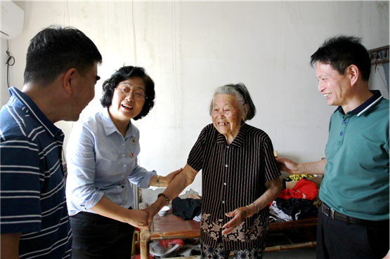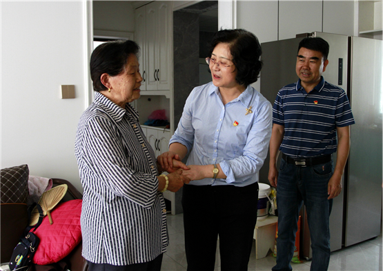 在中国共产党百年华诞即将到来之际,6月24日上午,宣州区政协主席鲍莎莎赴狸桥看望慰问困难党员何裕梅和李秀英,并向她们致以亲切问候和崇高敬意。1978年入党的何裕梅虽为困难党员,疫情防控期间,带头捐款2000元支持镇村疫情防控工作。今年89岁高龄的老党员李秀英有着51年党龄,当鲍莎莎为其佩戴“光荣在党50年”纪念章时,李秀英坚持起身,整理好衣着,庄严地接过纪念章。