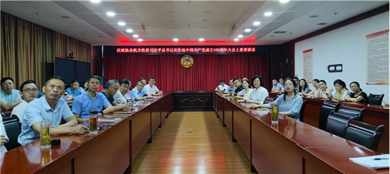 7月1日上午8时,庆祝中国共产党成立100周年大会在北京天安门广场隆重举行。中共中央总书记、国家主席、中央军委主席习近平出席大会并发表重要讲话。宣州区政协机关组织党员干部认真收看了庆祝中国共产党成立100周年大会直播实况,并认真学习总书记的讲话内容。宣州区政协主席鲍莎莎、副主席周启旺等区政协领导参加收看活动。