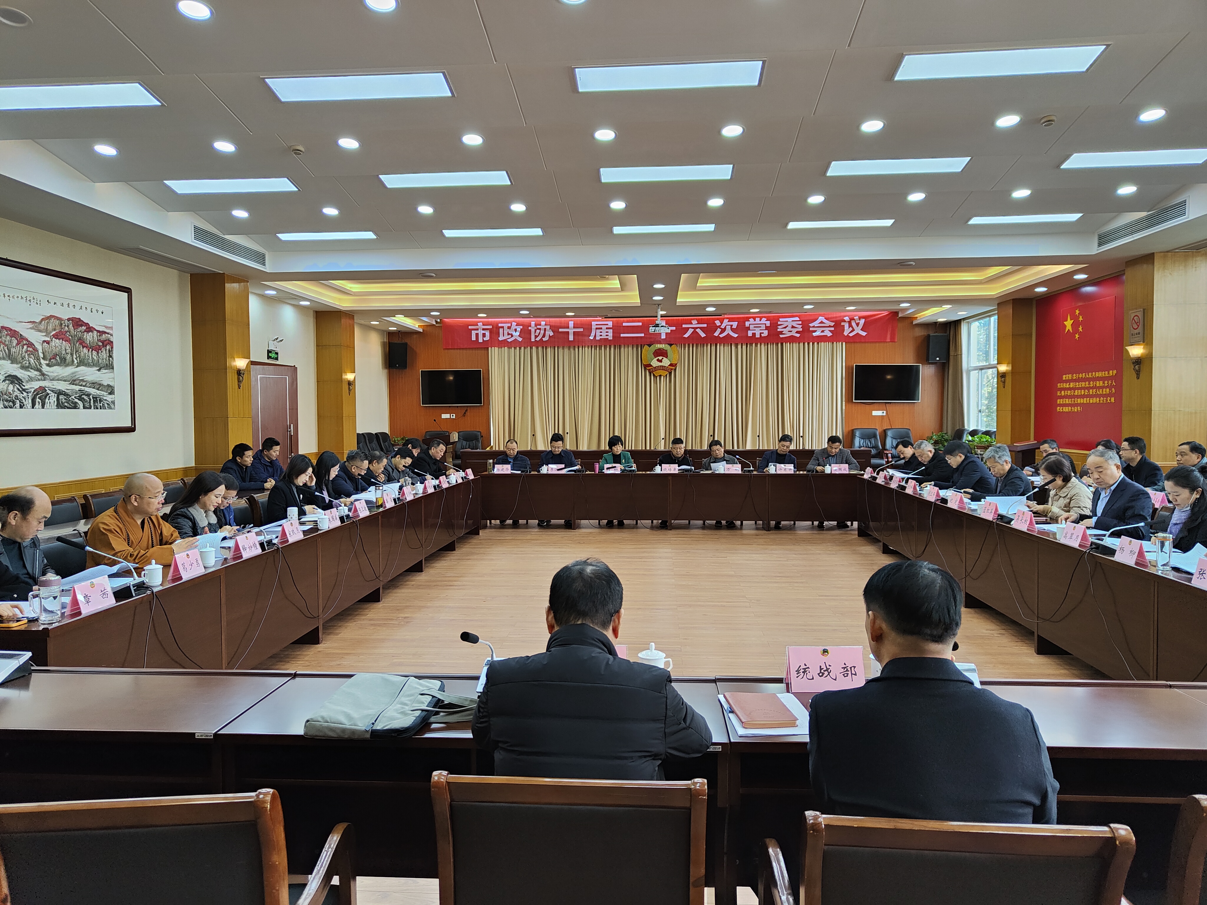 11月22日上午,宁国市政协十届二十六次常委会议召开。宁国市政协主席饶培康讲话。市政协副主席万辉主持会议。市政协副主席刘琳、许东升、李汉林、晏国成,秘书长杨建华,政协常委,不是市政协常委的驻会专委会主任、副主任,市政协机关各室主要负责人,相关市直单位负责人参加会议。